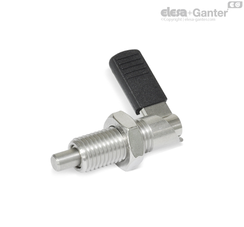 U pružinových pístků s páčkou GN 721.5 se zatažení čepu pružinového pístku provádí otočením páčky k dorazu o 180°.