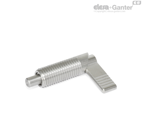 U pružinových pístků s páčkou GN 721.6 je zajišťovací čep udržován ve své zatažené poloze pomocí drážky.