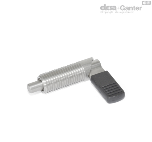 U pružinových pístků s páčkou GN 721.6 je zajišťovací čep udržován ve své zatažené poloze pomocí drážky.