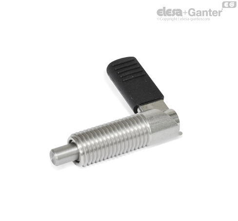 U pružinových pístků s páčkou GN 721.6 je zajišťovací čep udržován ve své zatažené poloze pomocí drážky.