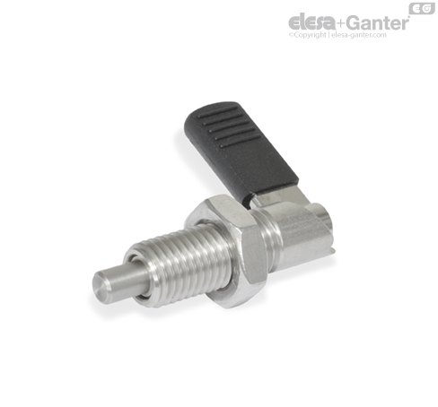 U pružinových pístků s páčkou GN 721.6 je zajišťovací čep udržován ve své zatažené poloze pomocí drážky.