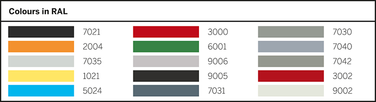 In addition to black, which represents the most commonly used colour for plastic components, a large number of standard elements are available in the following colours: