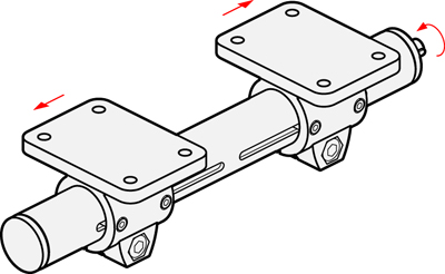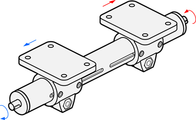 Linear actuator GN 292 with left and right hand thread, shaft journal at either one or both ends, with two linear actuator connectors GN 146.1, the two connectors move symmetrically.