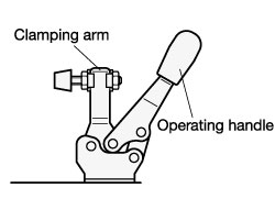 Even the slightest forward movement of the operating handle brings the clamping arm with the contact pad over the workpiece.